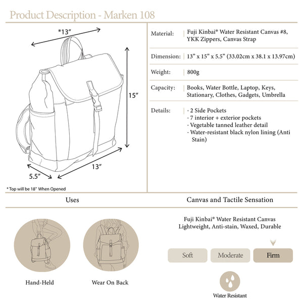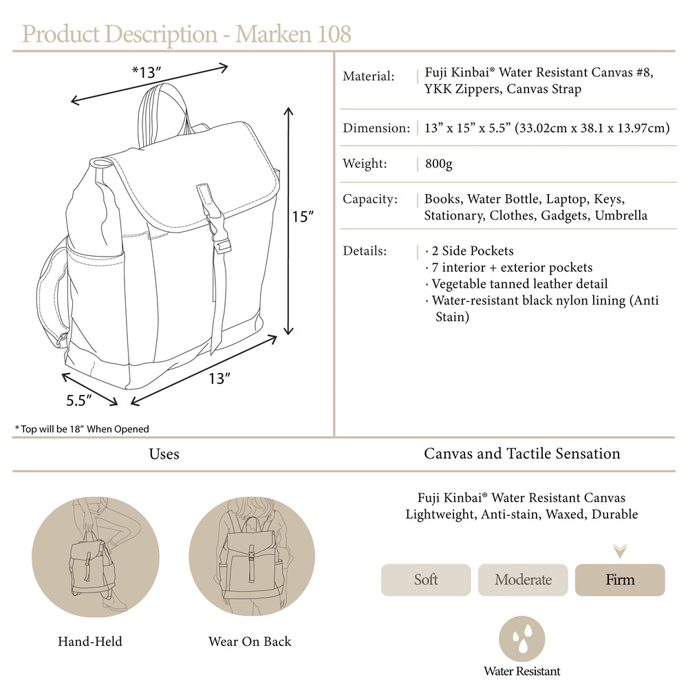 "Marken 108, our best-selling backpack is truly amazing for both men and women with large capacity. It covers all your need including work, school, travel or as a laptop backpack which won’t disappoint you.