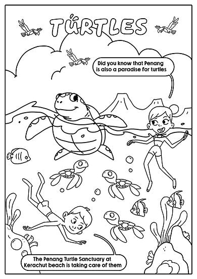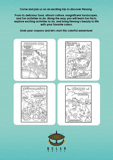 From its delicious food, vibrant culture, magnificent landscapes, and fun activities to do. Along the way, you will learn fun facts, explore exciting activities to do, and bring Penang's beauty to life with your favourite colours.