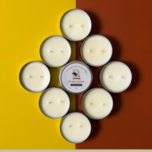 Lilin Penghalau Nyamuk diperbuat daripada lilin soya berkualiti terbaik yang diselitkan dengan kepekatan tinggi bahan berasaskan tumbuhan yang menghasilkan bau sitrus yang menyegarkan.