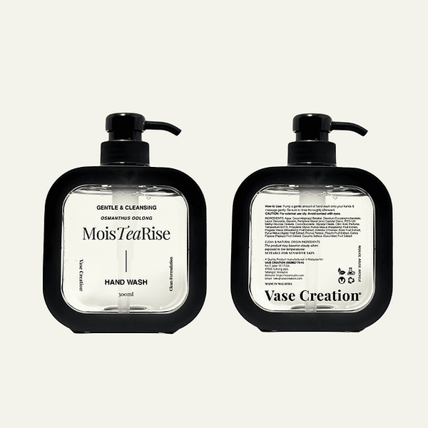 Manjakan diri dalam Ketenangan dengan Vase Creation MoisTeaRise Hand Wash dalam Teh Oolong Osmanthus . Formula lembut ini, diselitkan dengan bauan teh Osmanthus Oolong yang menenangkan, membersihkan dan menyihatkan tangan.