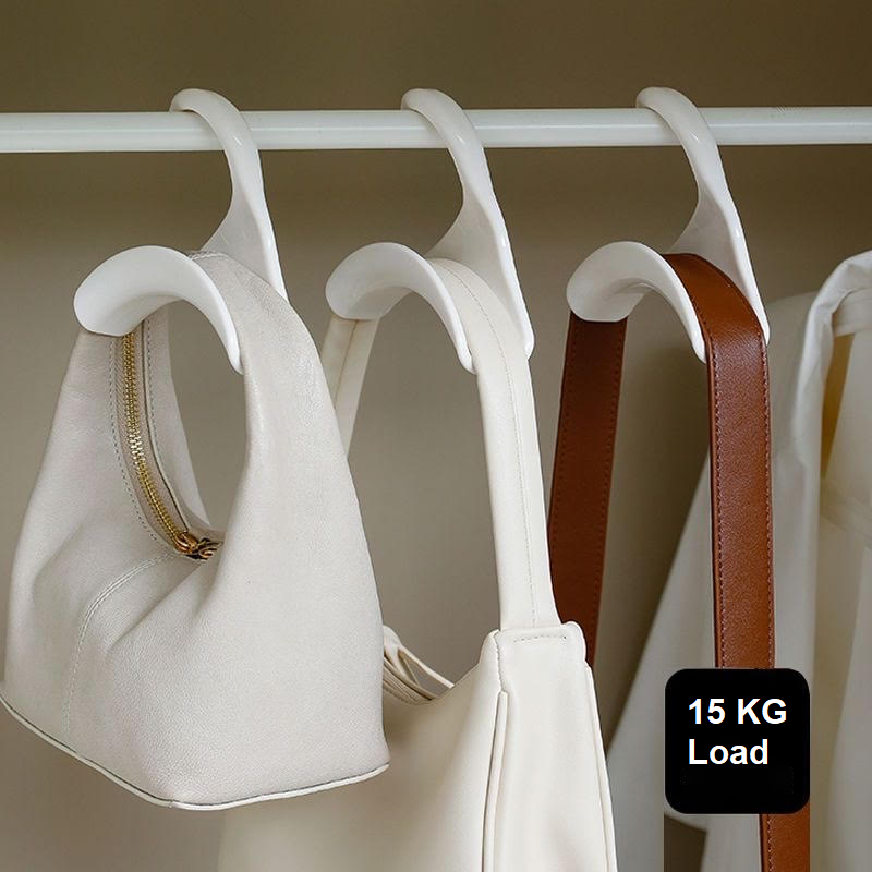 Cangkuk melengkung ini dibuat untuk menggantung beg tangan anda di dalam almari tanpa merosakkan tali atau meninggalkan kesan. Ia juga sesuai untuk menggantung tali leher, tudung dan aksesori lain untuk menjadikannya kelihatan lebih kemas dan teratur. Jangan risau, cangkuk ini juga mempunyai ketahanan yang tinggi kerana ia mampu memuatkan sehingga 15kg barangan.