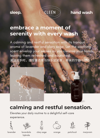 A calming and restful sensation with its tranquil aroma of lavender and clary sage. Let the soothing scent envelop your senses as you cleanse your hands, leaving them refreshed and nourished. Embrace a moment of serenity with every wash, as this hand wash elevates your daily routine to a delightful self-care experience.