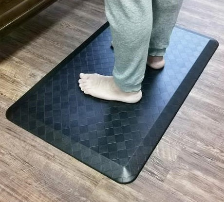 An anti-fatigue mat will not only be more comfortable than standing on a hard floor but it will also encourage you to subtly move your leg and calf muscles, which inevitably will improve blood flow to the heart. This is called 'Dynamic Ergonomics' - the study of implementing worker comfort by means of muscle activity. An Anti Fatigue mat is a fairly low-cost item that can benefit your health in so many ways and keep you energised and revitalised throughout the working day.