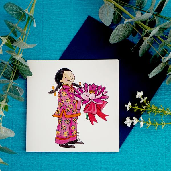 The Pagoda Kids Series brings flower greetings illustrated in a chinoiserie style by Swee.