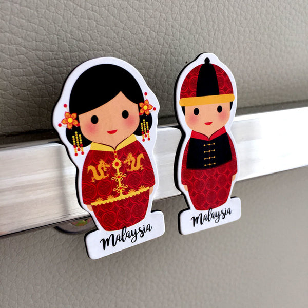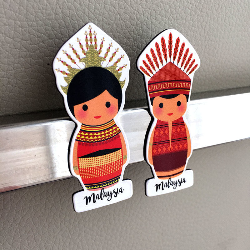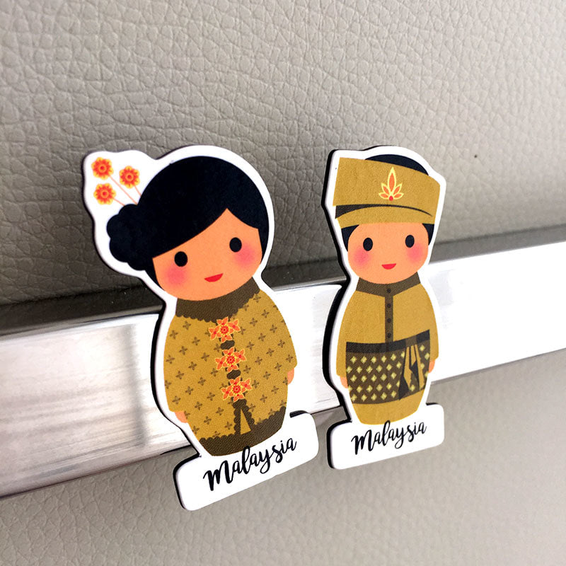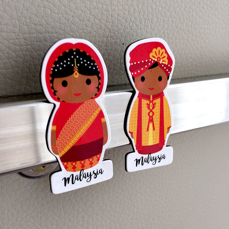 Cute couple from our range of magnets representing 6 major ethnic groups in Malaysia. This product range showcases the country's vibrant multi-cultural heritage by featuring the stunningly diverse and colourful traditional costumes & textiles.