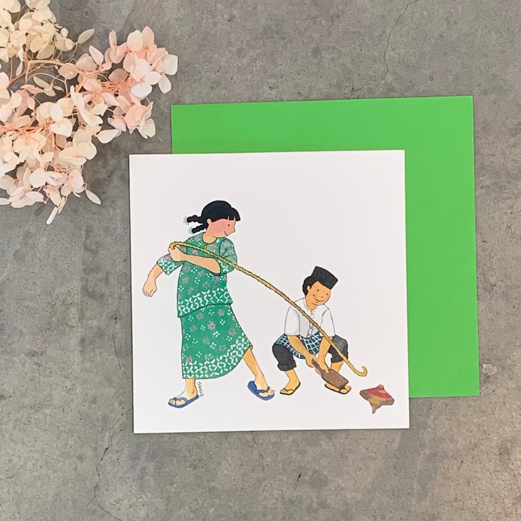 PAGODA KINGDOM Postcard: Hibiscus Kids - Gasing Evening