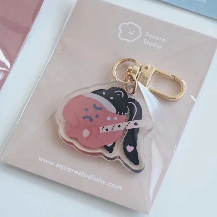 Let this adorable acrylic keychain help sweep away your bad mood after a long day.