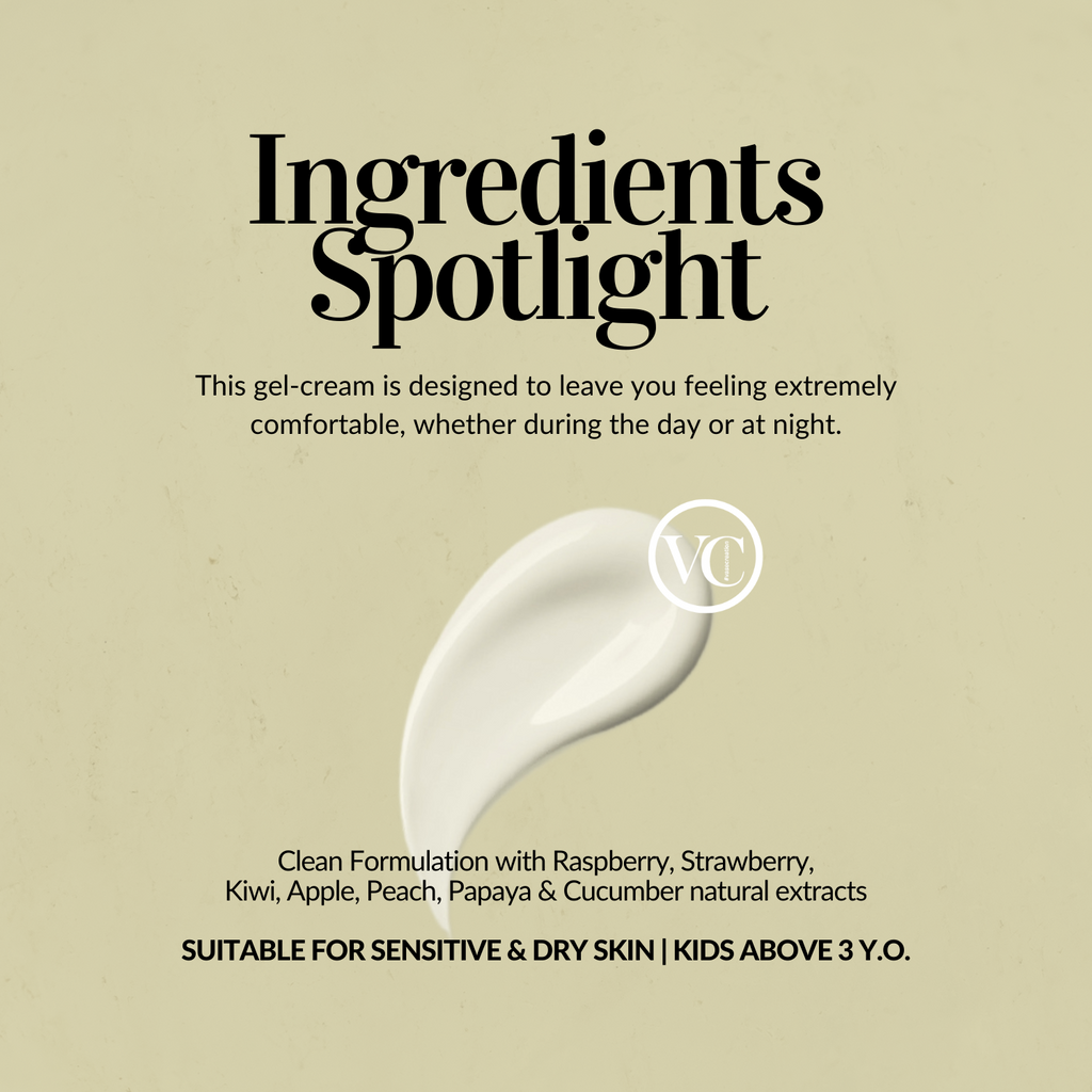 Ingredients: Aqua, Glycerin, Isopropyl Palmitate, Niacinamide, Pentylene Glycol, Caprylyl Glycol, Saccharide Isomerate, Fragrance, Sodium Acrylates Copolymer, Lecithin, Propylene Glycol, Rubus Idaeus (Raspberry) Fruit Extract, Fragaria Vesca (Strawberry) Fruit Extract, Actinidia Chinensis (Kiwi) Fruit Extract, Pyrus Malus (Apple) Fruit Extract, Prunus Persica (Peach) Fruit Extract, Carica Papaya (Papaya) Fruit Extract, Cucumis Sativus (Cucumber) Fruit Extract