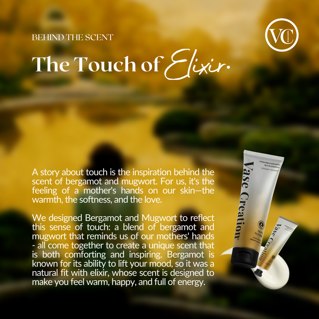 For us, it's the feeling of a mother's hands on our skin—the warmth, the softness, and the love. We designed Bergamot and Mugwort to reflect this sense of touch: a blend of bergamot and mugwort that reminds us of our mothers' hands - all come together to create a unique scent that is both comforting and inspiring.